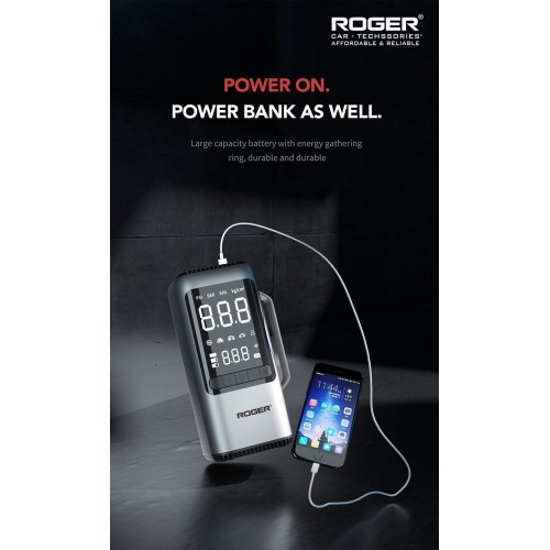 2 reviews for ROGER 6-in-1 Car Jump Starter with Digital Tyre Inflator (150 PSI), Vacuum Cleaner, 8000mAh Power Bank & LED Light | For 3L petrol & 2.2L Diesel Cars