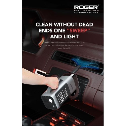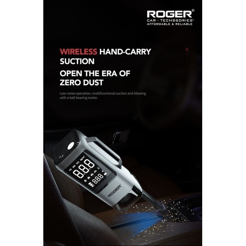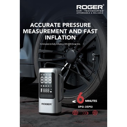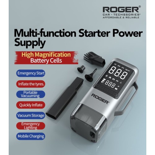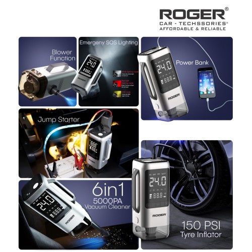 ROGER 6-in-1 Car Jump Starter with Digital Tyre Inflator (150 PSI), Vacuum Cleaner, 8000mAh Power Bank & LED Light | For 3L petrol & 2.2L Diesel Cars