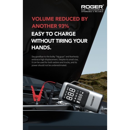 -28%ROGER 6-in-1 Car Jump Starter with Digital Tyre Inflator (150 PSI), Vacuum Cleaner, 8000mAh Power Bank & LED Light | For 3L petrol & 2.2L Diesel Cars